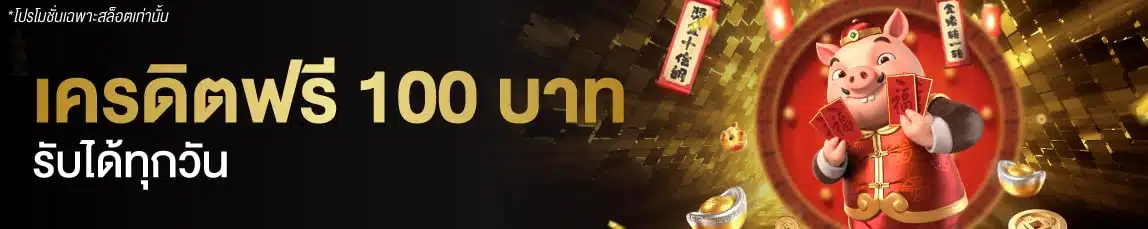 - โปรลุ้นเป็นผู้โชคดี: โปรรับเครดิตฟรีทุกวันจำนวน 100 บาท สำหรับการเข้าเล่นเกมสล็อตออนไลน์เท่านั้น
